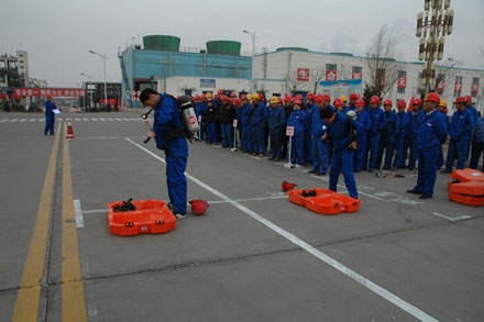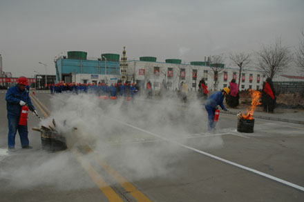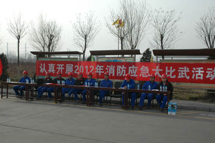 2012年11月21日下午,为提高岗位员工的消防应急能力,化工公司组织员工在厂区内开展了“消防月”大比武活动。化工总经理韩永飞、常务副总经理刘光杰、副总工程师崔增平、总经理助理苏新华及总经理助理王建华等领导观看了比武活动。