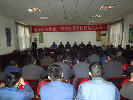 2013年2月7日,选煤厂召开了2013年春季检修动员大会,矿业公司副总经理王建明等领导、各相关职能部室负责人及检修部全体人员等70余人参加了会议。