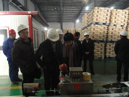 各位领导实地参观了化工成品包装库,韩总向大家介绍了公司循环经济产业链及现代化化工企业的优点和PVC、烧碱的市场形势及我公司的生产情况等。