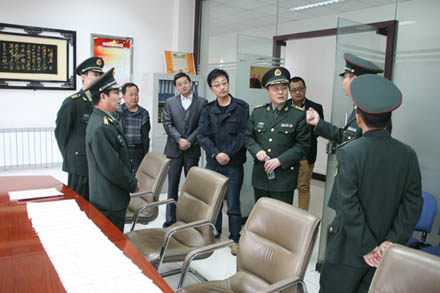 2013年3月21日上午,乌海军分区司令孟福祥、乌达区人武部部长鲍文玉、乌达区人武部政委尹世光等领导一行7人到我公司民兵营部指导工作,公司总经理办公室副主任郭文宇、治安保卫总队长郝永亮、乌达园区治安保卫队长刘铁军等接待了领导一行。